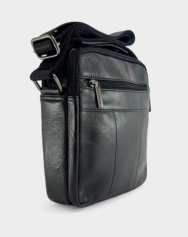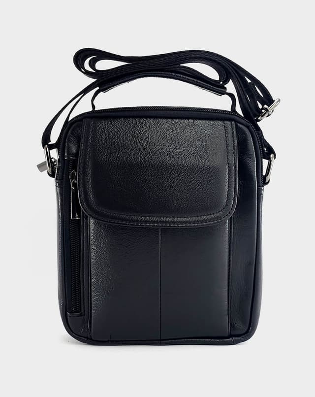 Машка чанта со класичен дизајн изработена од мазна природна кожа во длабока црна нијанса. Опремена со преден џеб со капаче, страничен патент и главна преграда со патент, оваа чанта нуди сигурност, функционалност и стил во едно.
