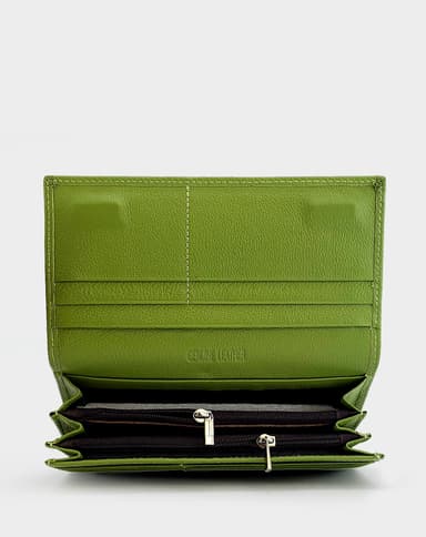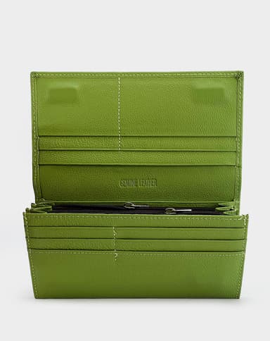 Женски паричник изработен од висококвалитетна природна кожа во впечатлива светло зелена нијанса. Располага со повеќе прегради за картички, документи и патент за монети, совршен за организирано секојдневие.