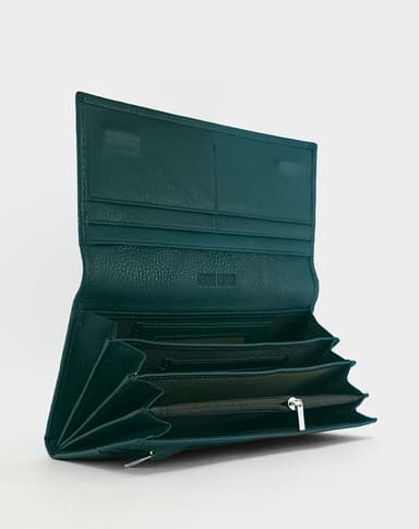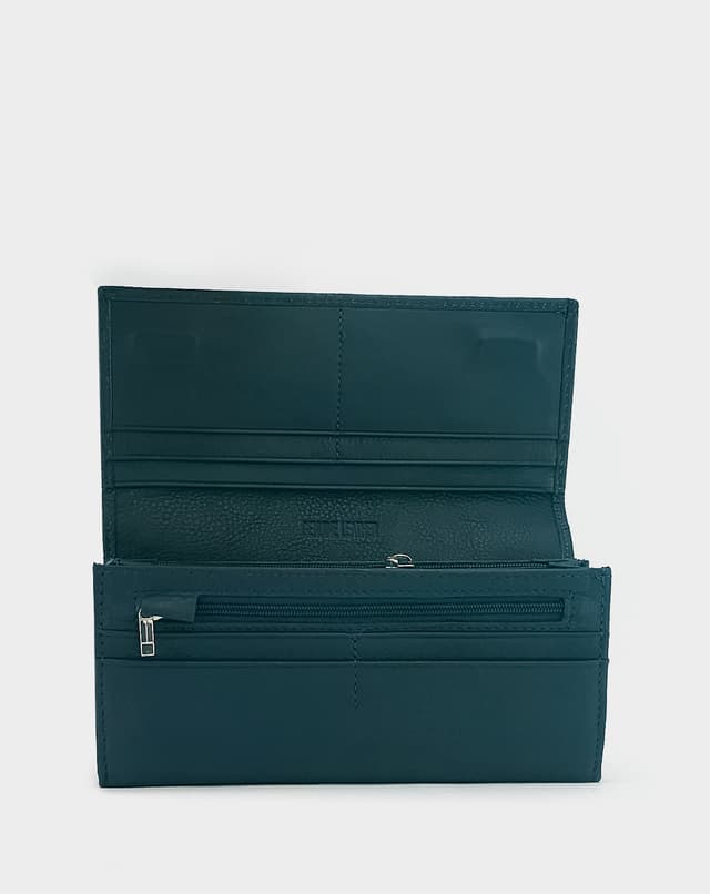 Женски паричник изработен од природна кожа во елегантна сина нијанса. Нуди одлична организација со повеќе прегради за картички, два внатрешни патенти и широки отвори за лесен пристап до секојдневните потреби.