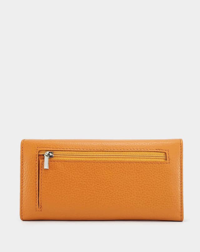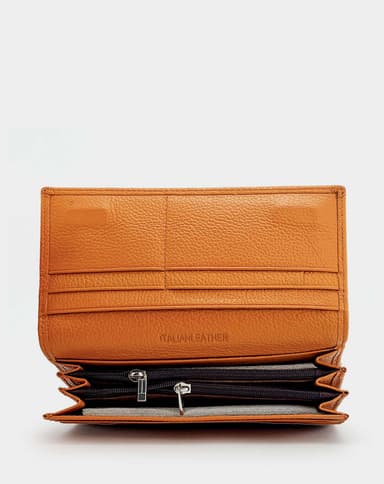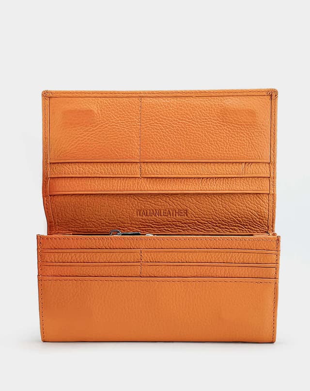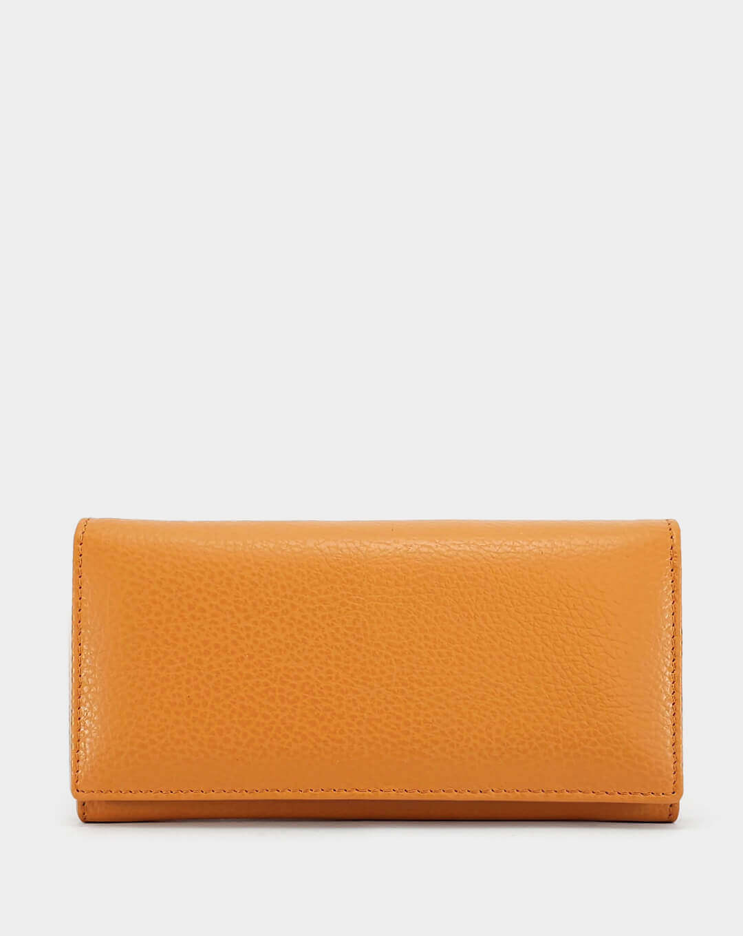 Женски паричник изработен од висококвалитетна природна кожа во впечатлива жолта нијанса. Располага со повеќе прегради за картички, документи и патент за монети, совршен за организирано секојдневие.