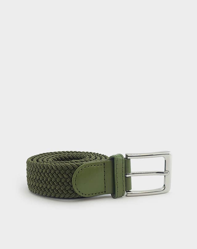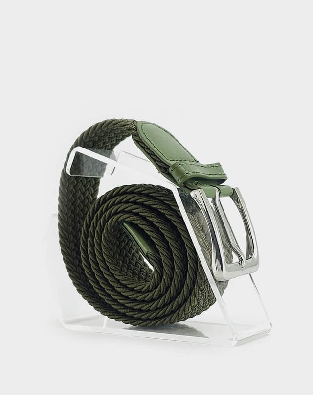 Машки еластичен ремен со префинет плетен дизајн во елегантна зелена нијанса, збогатен со фини кожни детали и сјајна метална тока. Благодарение на флексибилната структура без фиксни дупки, овозможува прецизно прилагодување и врвна удобност при носење. Идеален избор што внесува доза на елеганција и удобност во секој изглед.