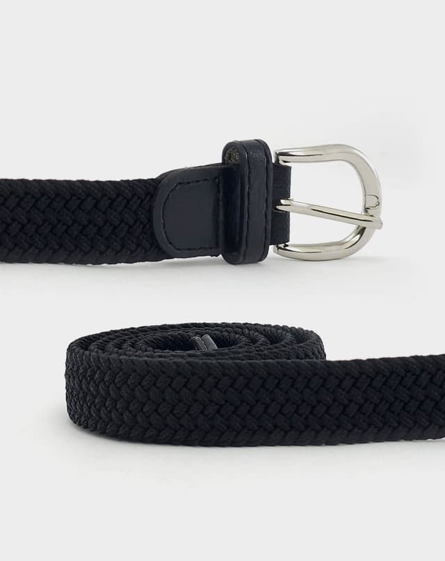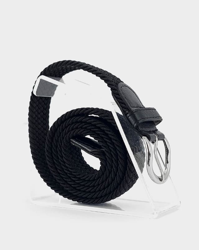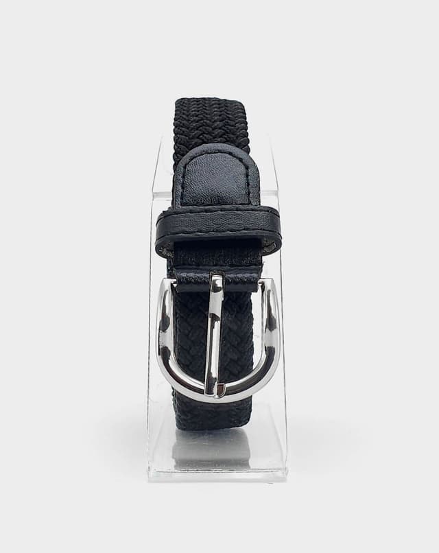 Женски еластичен ремен со префинет плетен дизајн во црна нијанса, збогатен со фини кожни детали и сјајна метална тока. Благодарение на флексибилната структура без фиксни дупки, овозможува прецизно прилагодување и врвна удобност при носење. Идеален избор што внесува доза на елеганција и удобност во секој изглед.