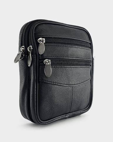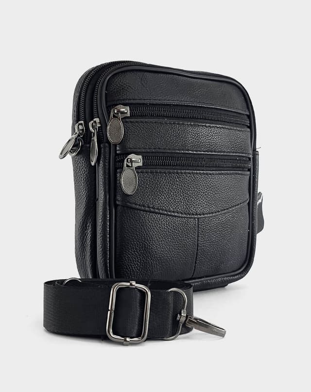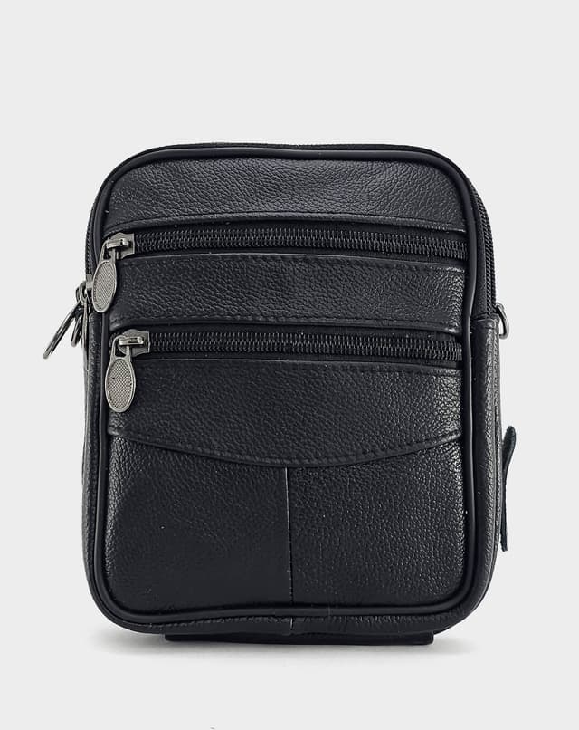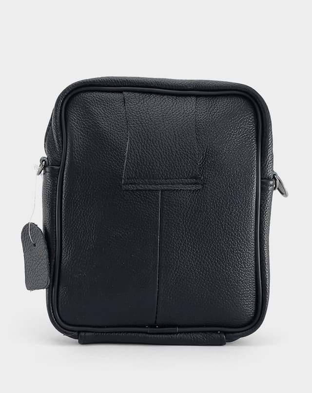 Машка чанта изработена од текстурирана природна кожа во црна нијанса. Располага со повеќе прегради со метални патенти, овозможувајќи прегледна организација и лесен пристап до секојдневните потреби. Компактна, практична и идеална за динамичен животен стил.