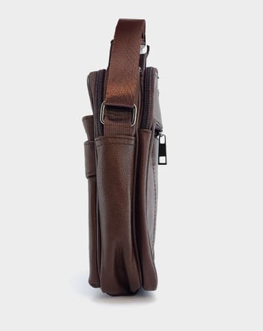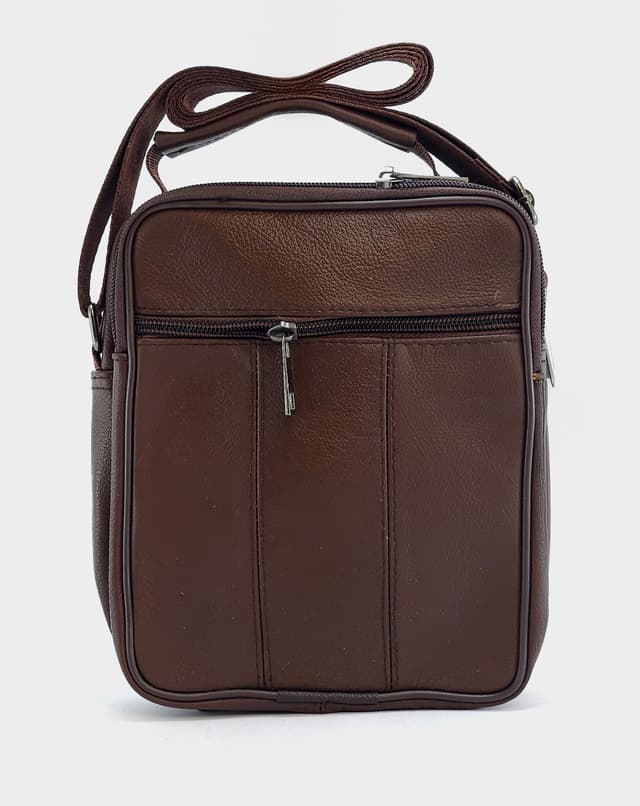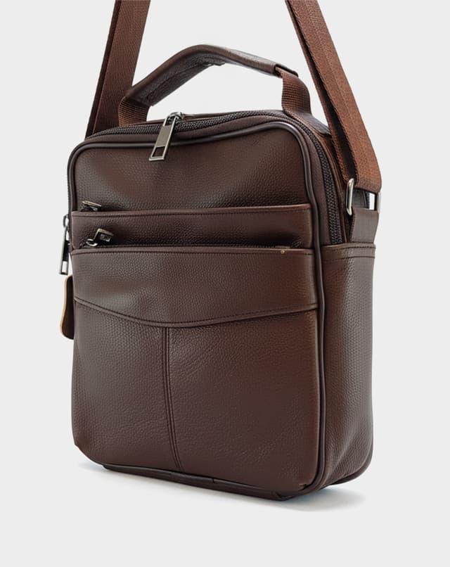 Машка чанта изработена од висококвалитетна природна кожа во темно кафеава нијанса. Поседува две предни прегради со патент, голема главна преграда и странична рачка за удобно носење. Совршена за секојдневна употреба.